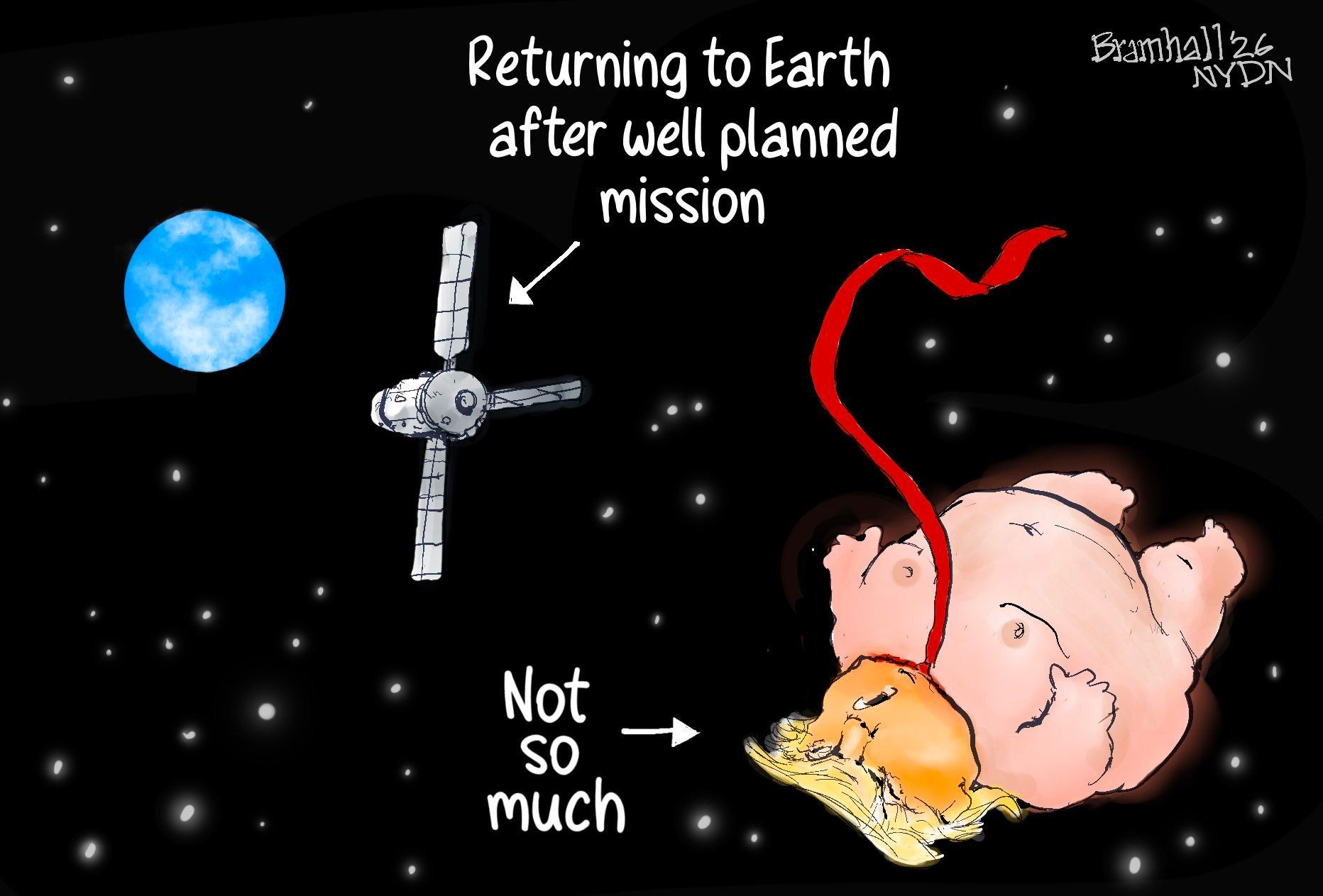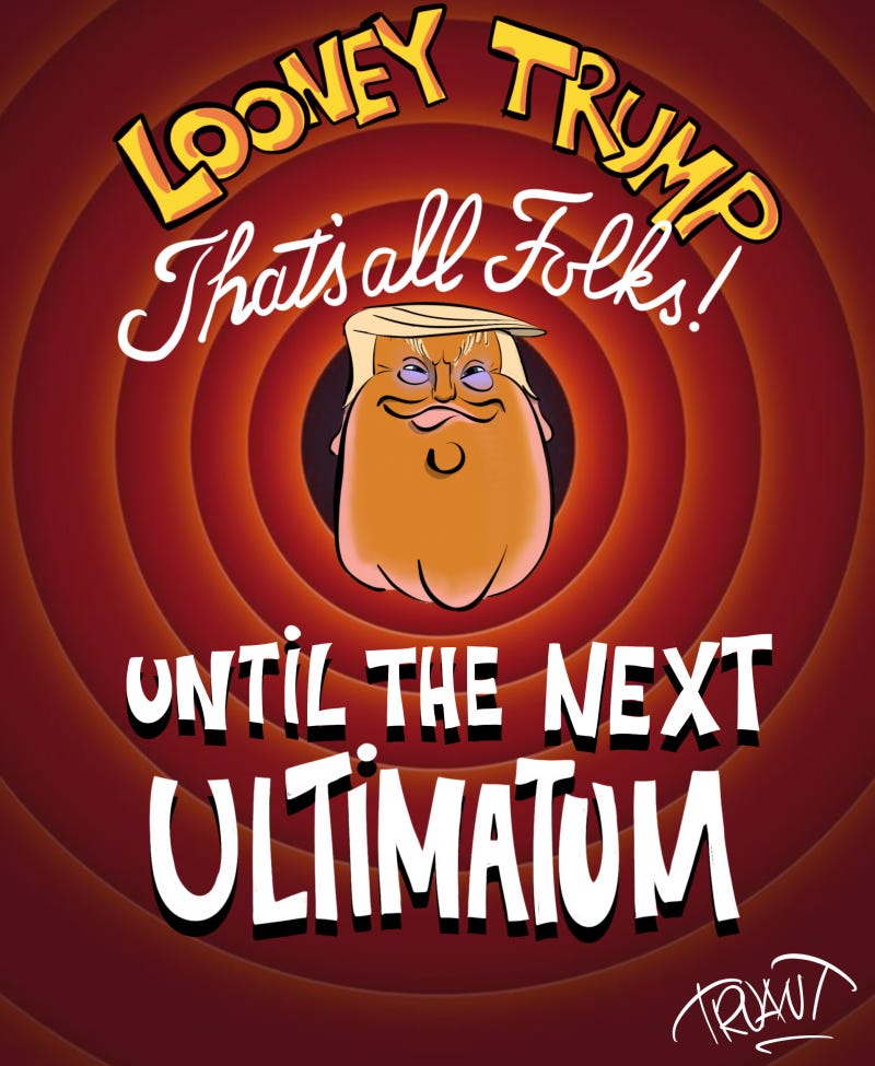 Happy, of course, that Trump pulled back on his promise to destroy Iran and all 5000 years of its civilization, but the ceasefire plan is shaky and he still must be removed from office. Bill Bramhall comments:
