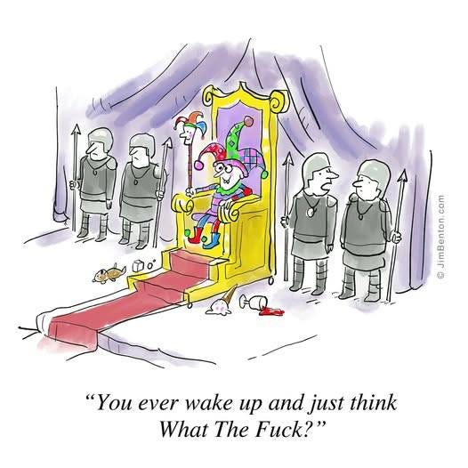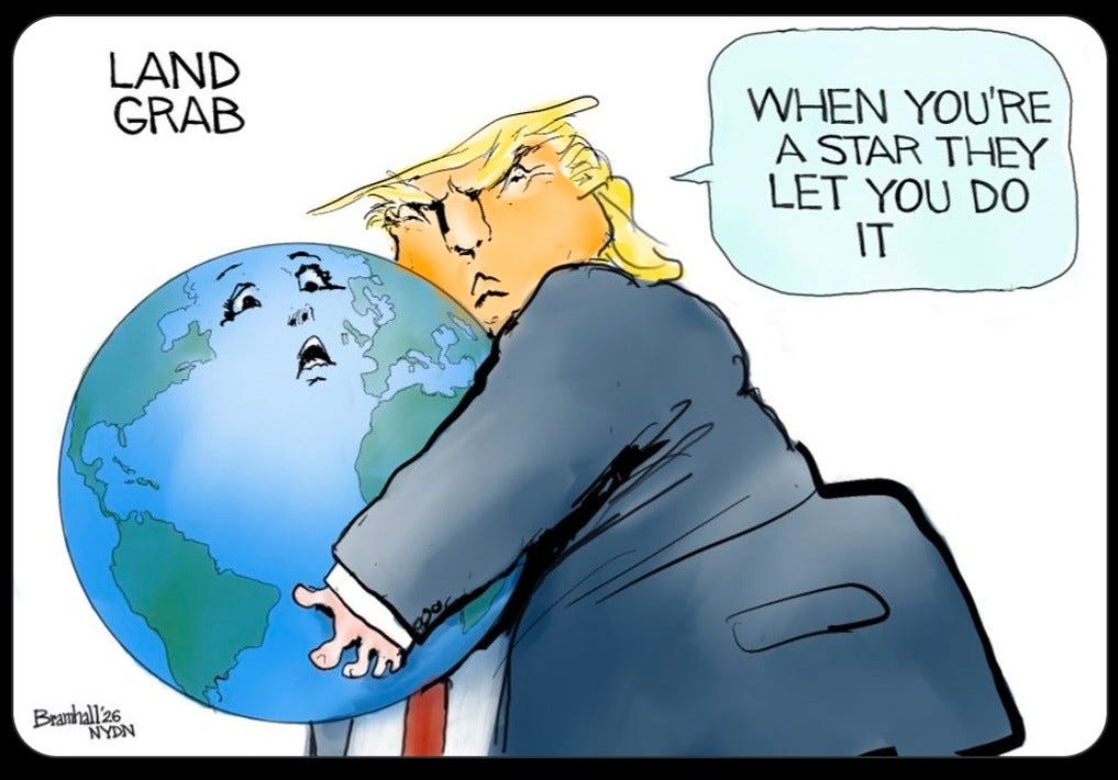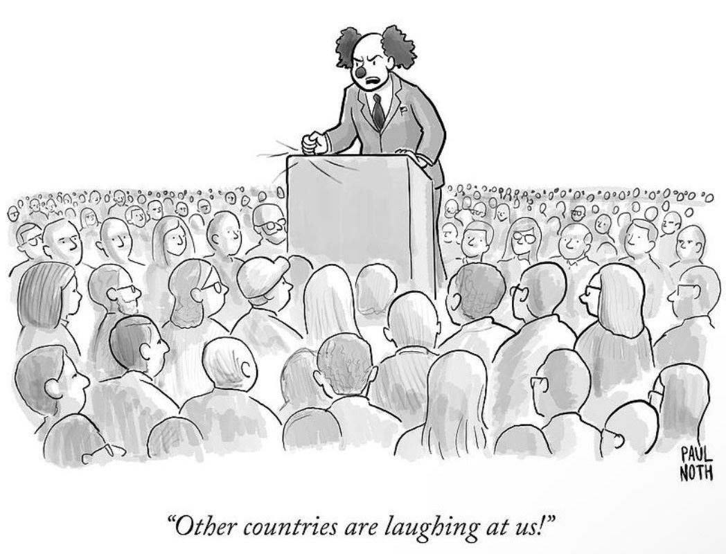 Great cartoons today! What a demented village fool/idiot, a global and particularly American embarrassment! Your SS sustains my laugh-track & I’m grateful for the tasty ‘toon, tune, cultural selections, & increasingly counting on them in this scary, imploding world. Priceless & please keep it up! 👍 🤎🐾🐦⬛🩷