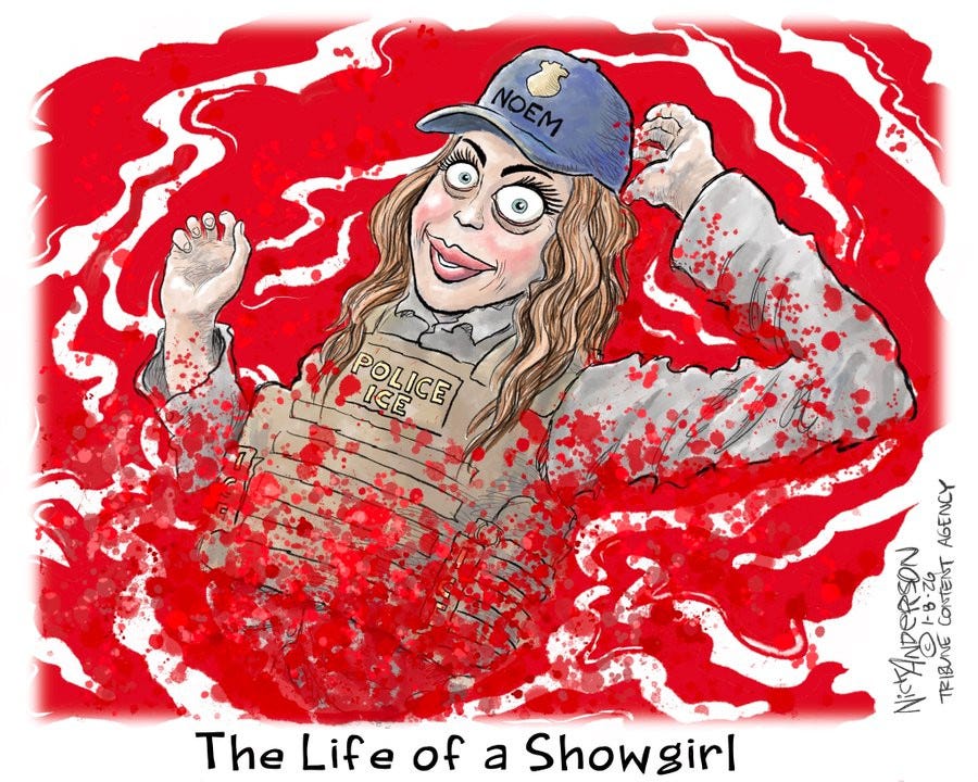 Rick Perlstein on Vance and Trump and other MAGAs claiming that yesterday’s new video from Minneapolis killer’s Iphone actually proved their self-defense rants when audio with it found Renee Good smiling at the shooter and wishing him well and the murderer calling her a “fucking bitch” after shooting her in the head: