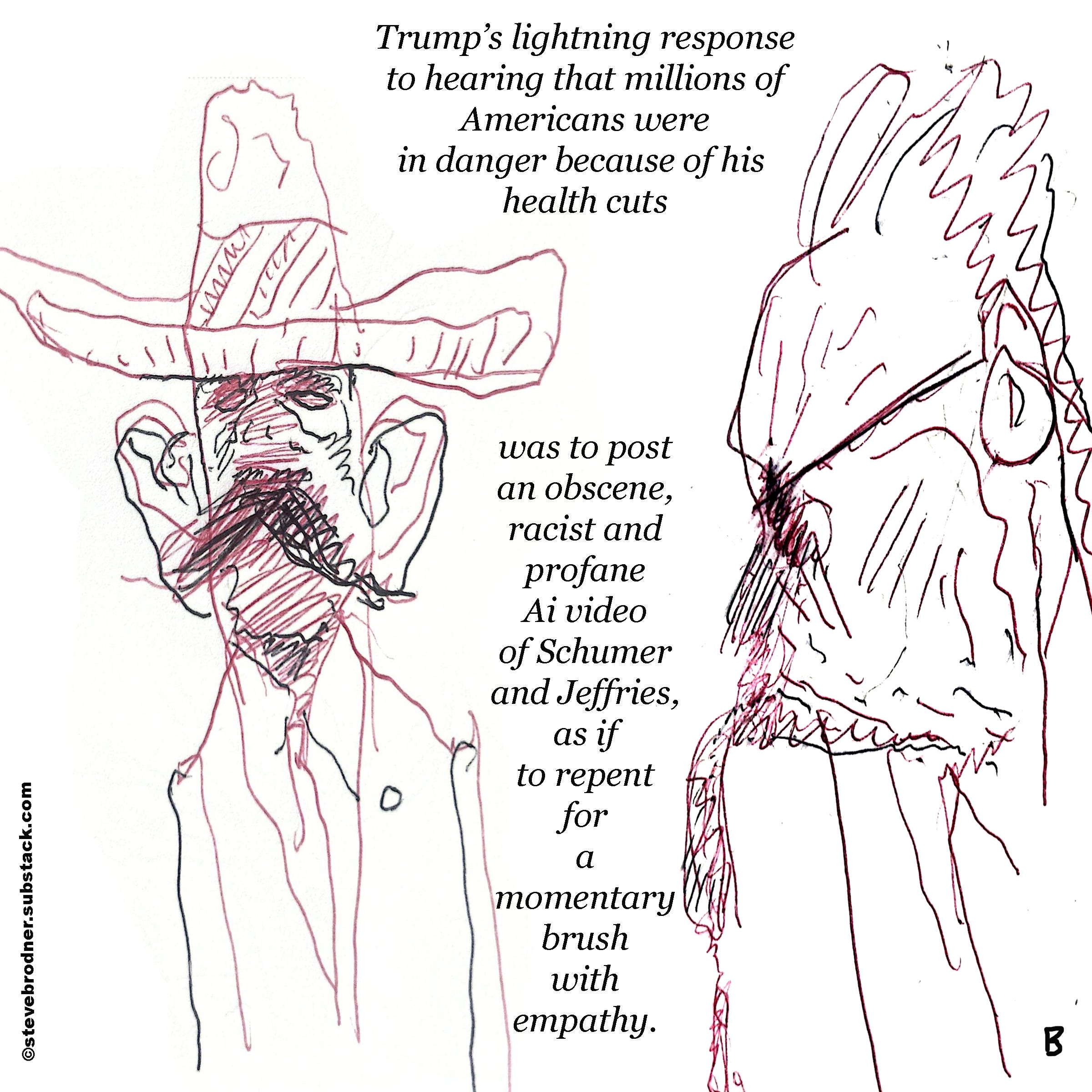 Never in the history of political cartooning have the illustrations been so on target as they are during Trump 2.0. Every MAGA and those who decided to stay home rather than vote for a woman should be forced to read and comprehend what each cartoon is saying. They are often humorous, but each one makes an extremely sad statement about the state of our nation.