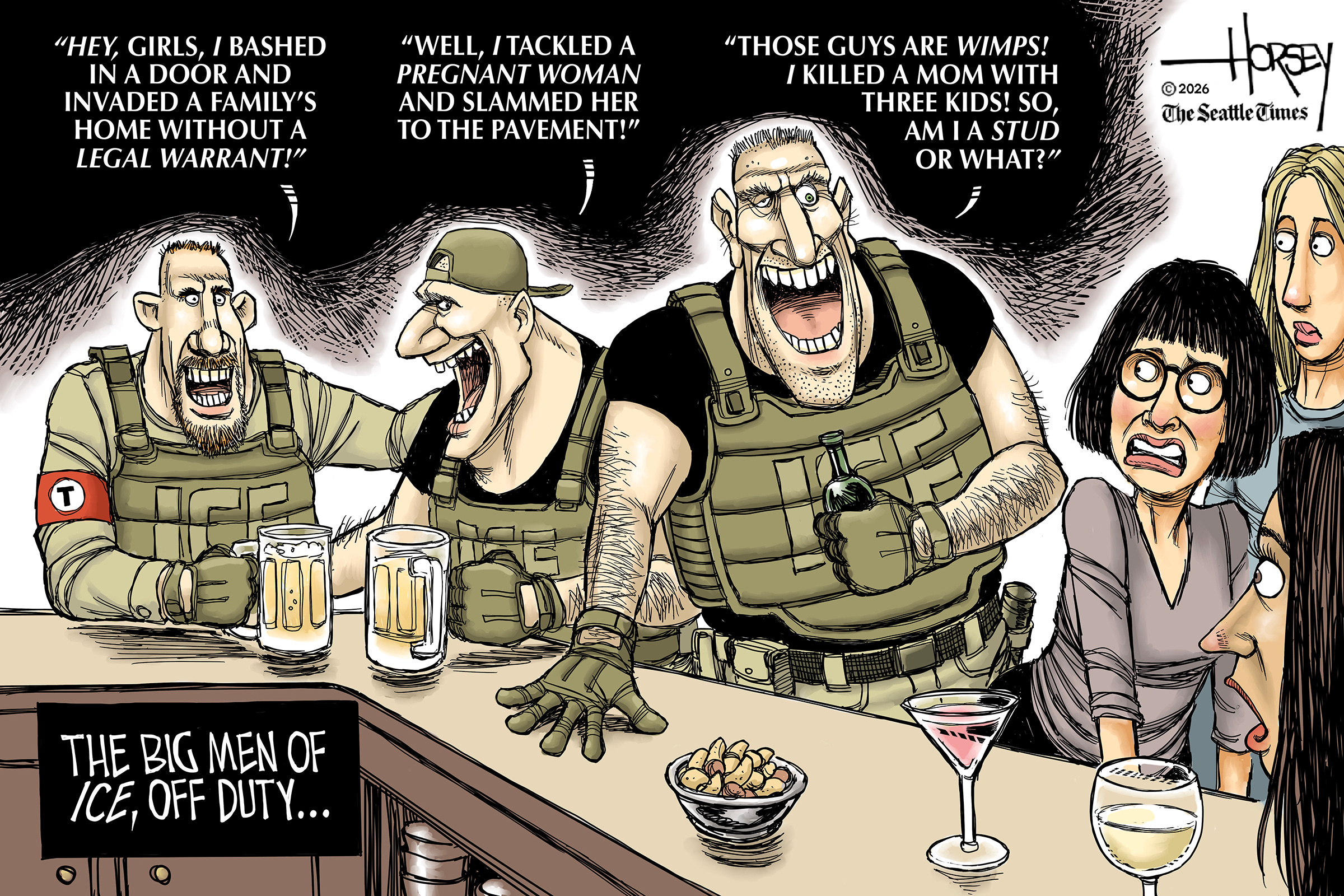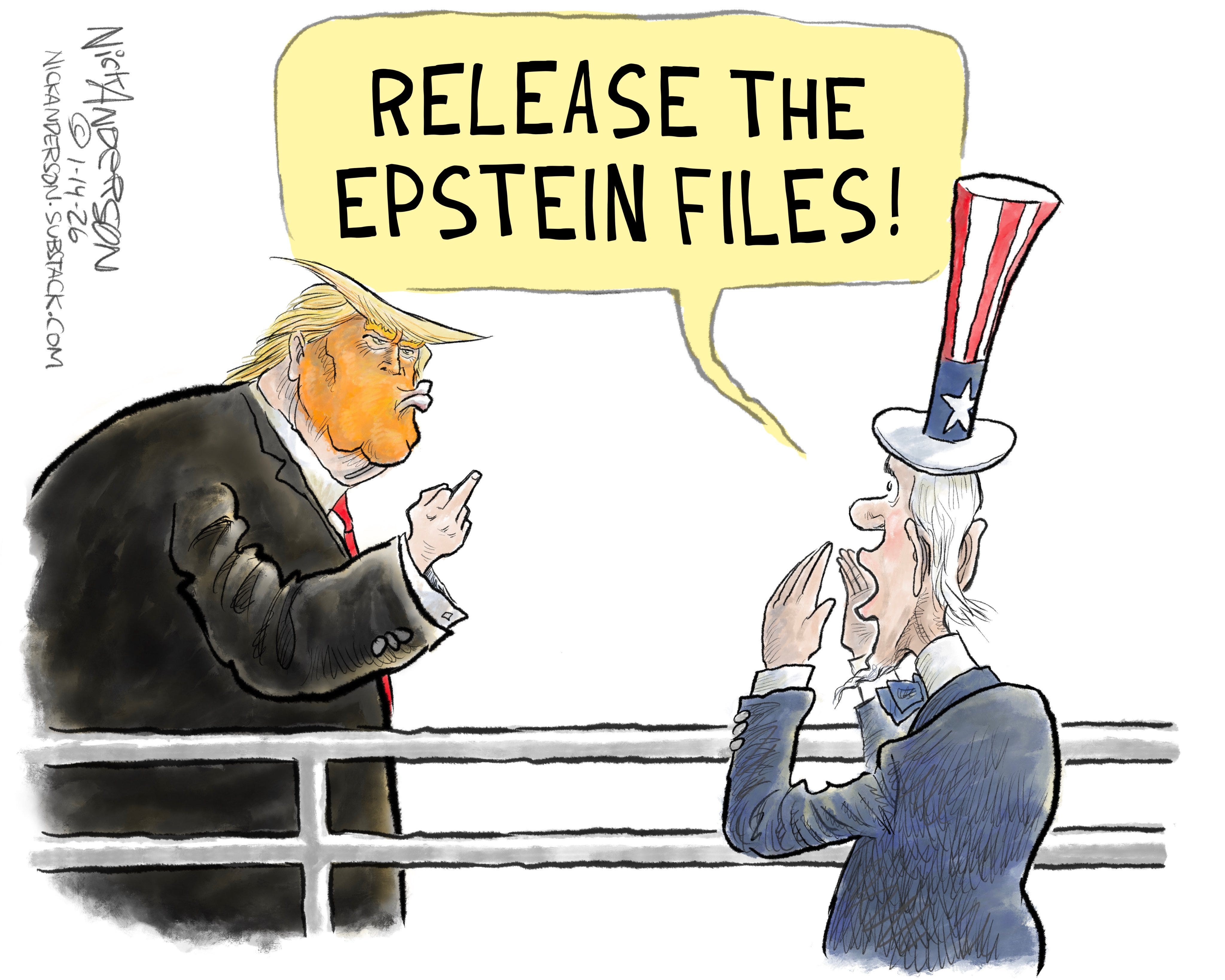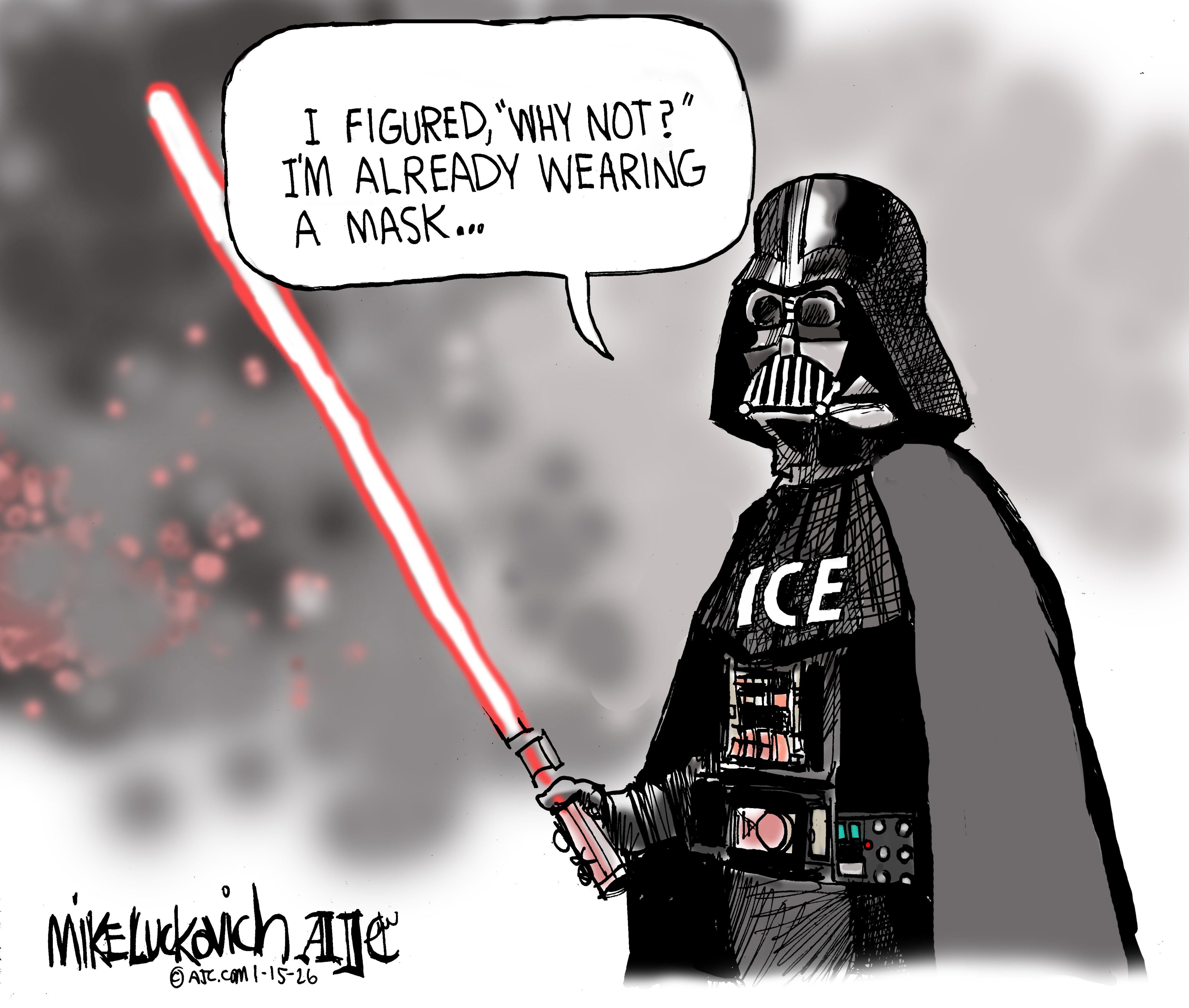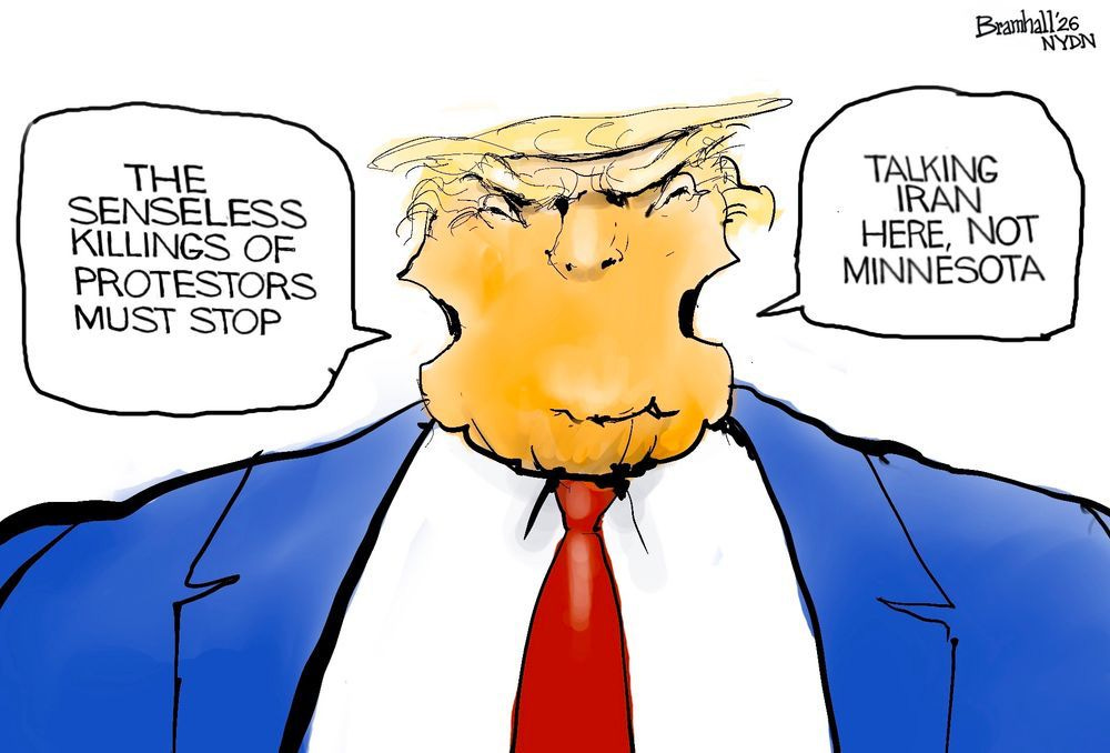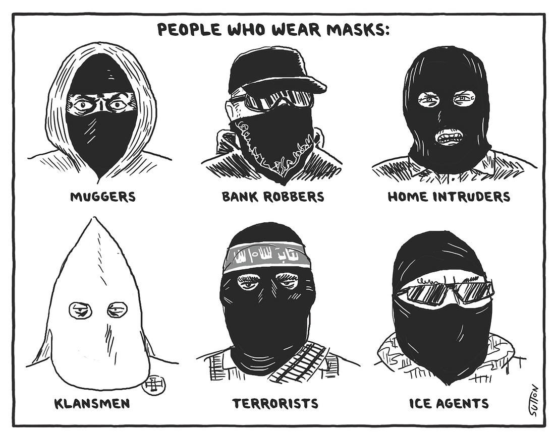 Ward Sutton, a celebrated cartoonist and illustrator, is a regular contributor to The Boston Globe, who rejected this powerful art, on a day when the Trump SA is persecuting the people of Minnesota.
